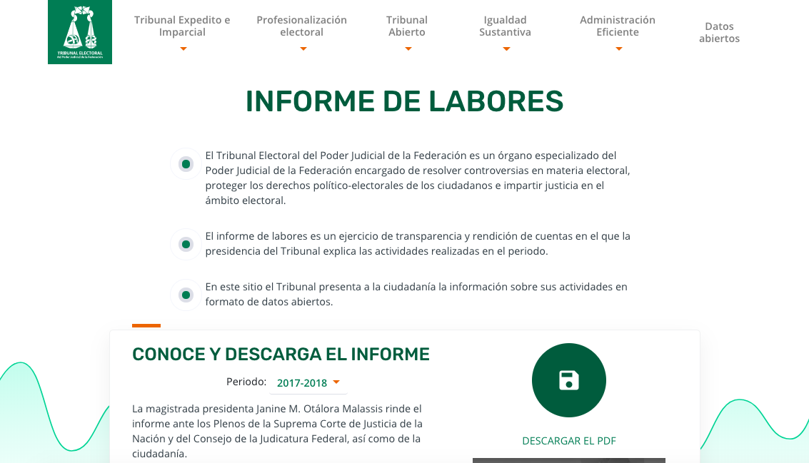 Ejercicio de transparencia y rendición de cuentas en el que la presidencia del Tribunal explica las actividades realizadas en el periodo en formato de datos abiertos.